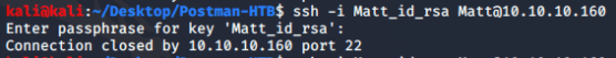 NOTE: this ultimately fails because the Matt user is set to “DenyUsers” in the sshd_config file on the target machine.