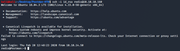 While doing this research I stumbled across some posts and mentions about ways to import an SSH key using redis. The “Kali Linux – An Ethical Hackers Cookbook” has a step-by-step walk through of how this is done. Below are the steps I used to perform the SSH key import.