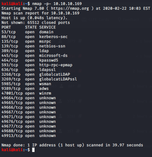 This box was a Windows domain controller that had some relaxed permissions on SMB shares that allowed me to obtain my initial foothold on the machine. After gaining access I enumerated the system and found a user with elevated privileges who also inadvertently left their password in plain text in a transcript file. Once both the user and password were obtained I used the “psexec_psh” module in Metasploit to gain access and obtain root.