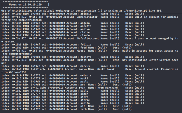 I used enum4linux to enumerate the users on the target machine and received the following: