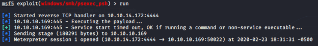 I used these new credentials to connect and did some more enumerating. I decided to try using the psexec_psh module in Metasploit to see if I could obtain remote access.